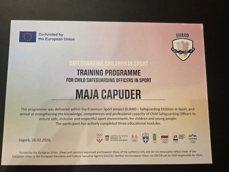 Tijekom edukativnih radionica, predstavnica HBS-a stekla je napredna znanja o prepoznavanju rizika, prevenciji svih oblika nasilja te uspostavi sigurnog okruženja unutar sportskih organizacija. Po završetku programa, Maji Capuder dodijeljen je službeni certifikat, čime je Savez dobio stručno osposobljenu osobu za nadzor i provedbu protokola zaštite djece (Child Safeguarding).